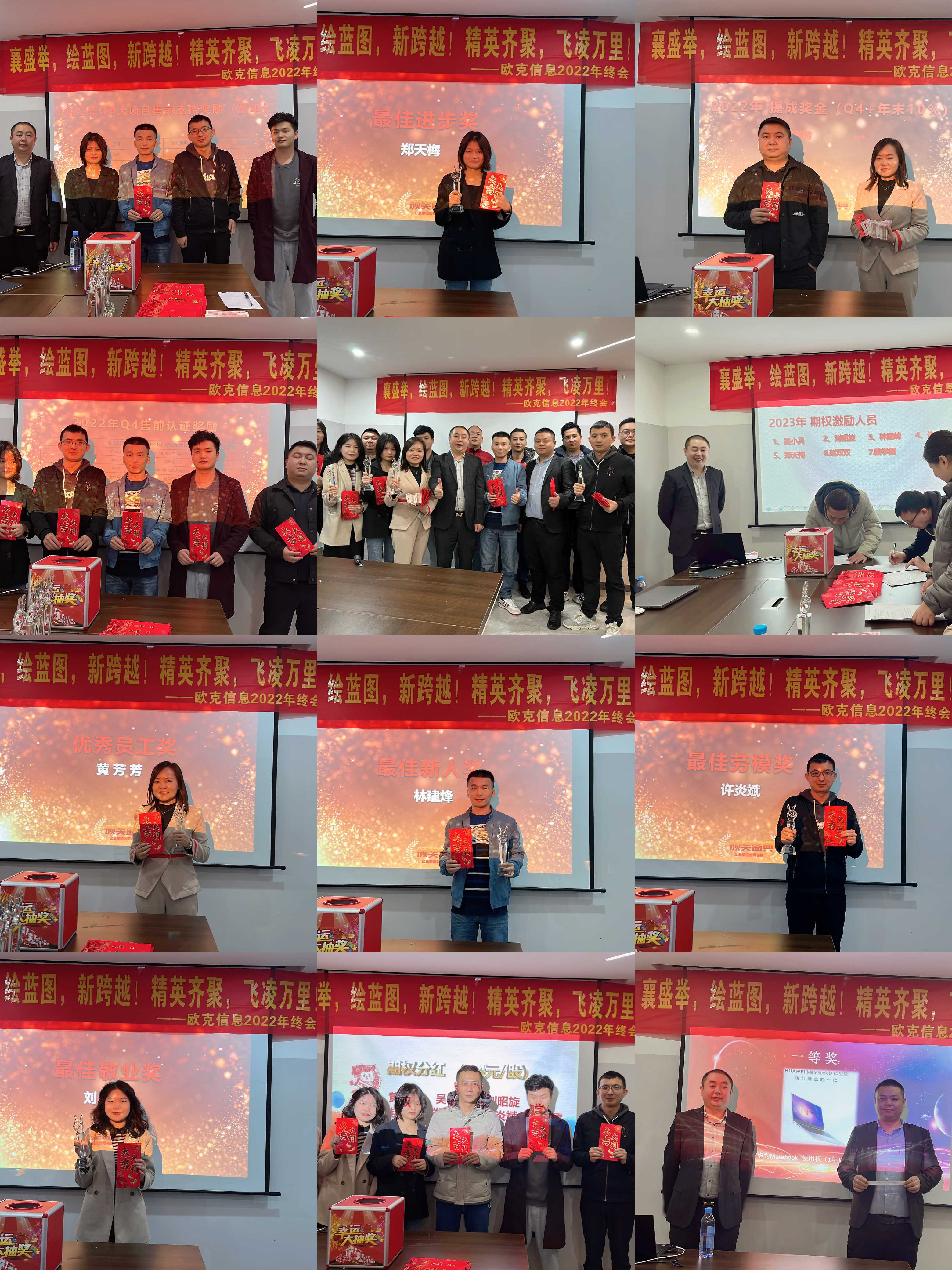 2022年的歷程,有挫折,有成功,每一次進(jìn)步和成長(zhǎng)都離不開(kāi)他們,一群可愛(ài)可敬的人。分別有年度優(yōu)秀員工、最佳敬業(yè)獎(jiǎng)、最佳勞模獎(jiǎng)、最佳新人獎(jiǎng)、最佳進(jìn)步獎(jiǎng)頒獎(jiǎng)等。歐克一家人共同感受溫馨氛圍,共同期待公司在新的一年里向著更高的目標(biāo)展翅翱翔。