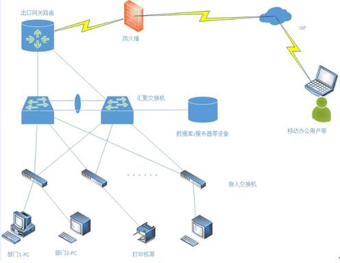 中型企業(yè)網(wǎng)方案優(yōu)勢(shì):冗余網(wǎng)絡(luò),可靠性、高可用性得到保障、網(wǎng)絡(luò)性能充分使用,管理相對(duì)方便,網(wǎng)絡(luò)擴(kuò)展靈活性高。